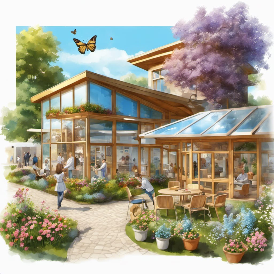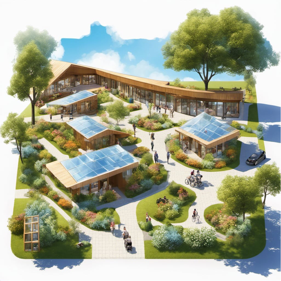 Housing options include charming homes or pods available for lease through a housing trust or for affordable purchase. Surrounding the village, we will promote social housing and develop communal gardens that celebrate local wildlife. Our residences will prioritise sustainability and renewable energy, with a long-term vision of providing homes under a 99-year government lease and options for outright purchase.